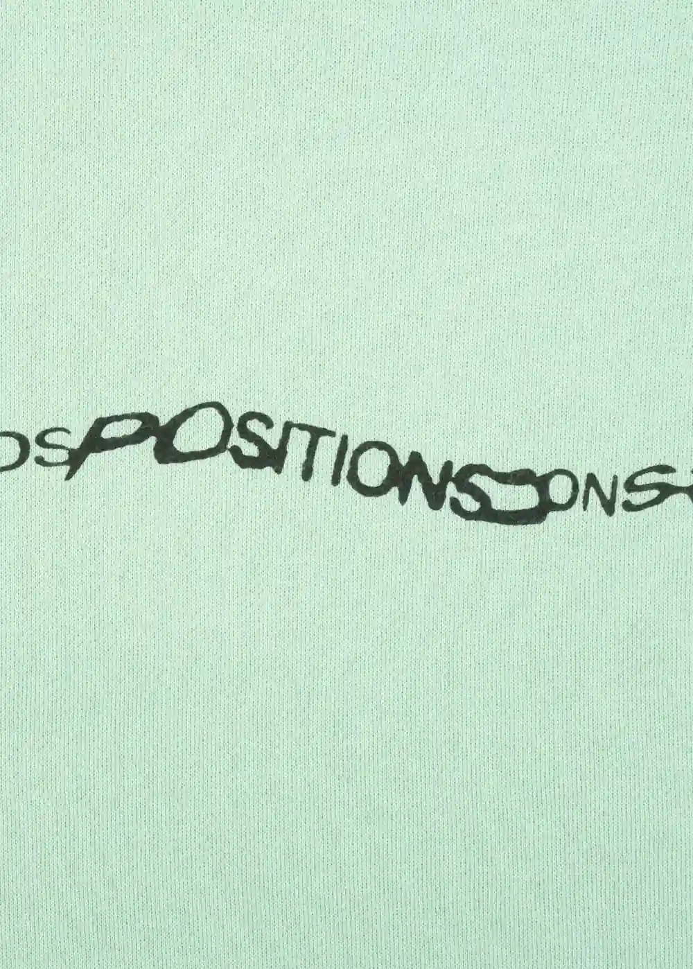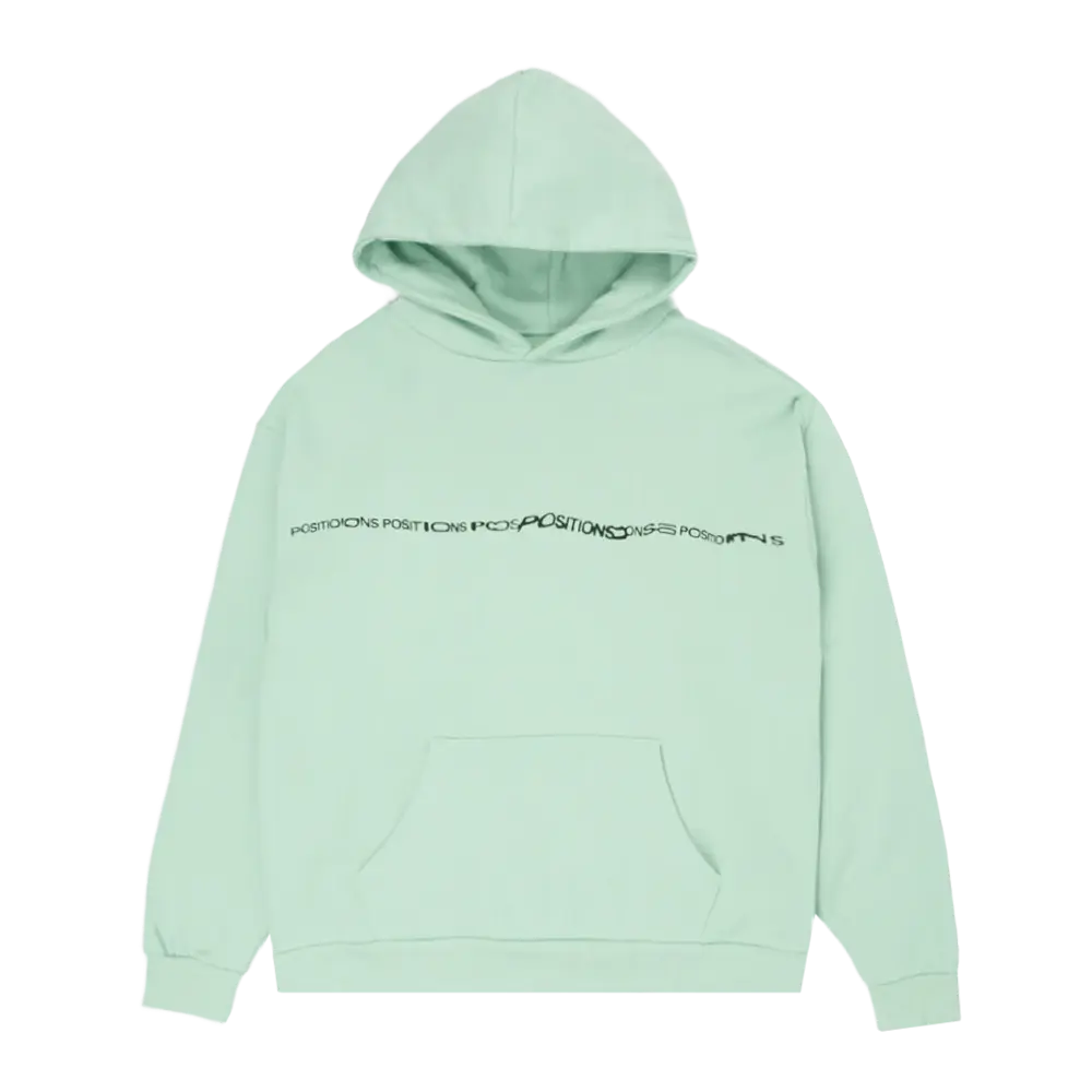 A. The hoodie is a soft pastel mint-green shade, closely matching our product photos. Slight variations may occur due to screen displays, but the actual color reflects the official Positions merch palette.